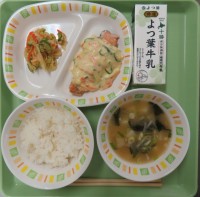 ☆ご飯☆じゃが芋のみそ汁☆鮭のマヨネーズ焼き☆切干大根サラダ☆牛乳~今年も頓別漁...