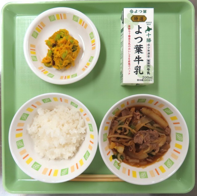 ~学校給食週間2日目は名寄市から「ジンギスカン煮」です。羊毛が盛んだった名寄市が羊肉を有効活用しようとジンギスカンを考えたことから広まりました。~