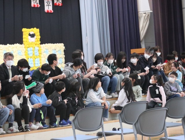 卒業式を間近に控えた今日、6年生を送る会が行われました。1~5年生からは心のこもったプレゼントが贈られ、6年生からも感謝の気持ちを込めたメッセージやプレゼントが会場の皆さんに届けられました。「おめでとう」と「ありがとう」の温かい気持ちがあふれる、素敵な会となりました。