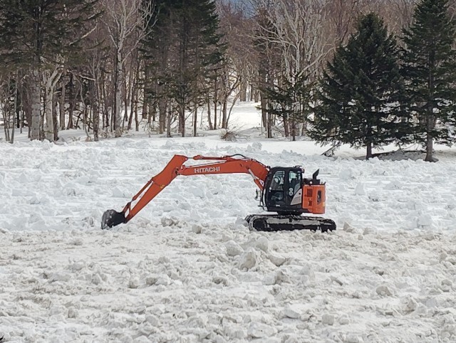 3月16日、雪の季節の終わりが感じられます。グラウンドに築かれた雪山が崩され、春を呼び込む作業の始まりです。今年も北開建設株式会社の皆様のご厚意により実施していただきました。グラウンドで走り回る子どもたちの姿が早く見られそうです(^^)/