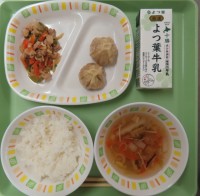 ☆ご飯☆五目スープ☆ショーロンポー☆チンジャオロース☆牛乳
