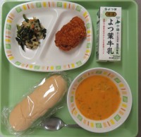 ☆ソフトフランス☆南瓜と人参のポタージュ☆フライドチキン☆ポパイサラダ☆牛乳~新...