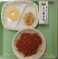 ☆ミートソーススパゲティ☆イタリアンサラダ☆パイン缶☆牛乳
