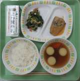 ご飯、さつまいも汁、ほっけフライ、いそか和え、牛乳
