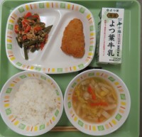 ☆ご飯☆白菜のみそ汁☆ぶりフライ☆いんげんそぼろ煮☆牛乳