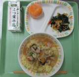若めご飯、あすか汁、野菜コロッケ、キャベツツナ和え、牛乳